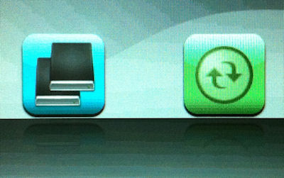 Im Anschluß an die Installation, ist ein Softreset auf dem Navi nötig. Hierzu wird die EIN-AUS-Taste, die sich am Gerät meist oben rechts befindet, kurz gedrückt, und dann wird in der Auswahl auf dem Display der rechte gelbe Button, der einen Kreis bildet (siehe Bild rechts), geklickt. Sofort danach startet das Gerät neu.