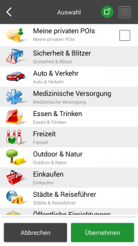Dieser grüne Reset-Button setzt die Auswahl aller POI-Kategorien, welche bereits aktiviert wurden zurück.