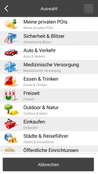 Abbrechen: Über diesen Button kann das Melden oder Bearbeiten eines POIs abgebrochen werden. Bisherige Änderungen gehen verloren!