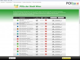 Durch die Veröffentlichung verschiedenster Daten seitens der Stadt Wien konnten wir über POIbase die Datensätze, die als Standort auf einem Navi geeignet erscheinen, so aufbereiten, dass sie kostenlos als POIs auf das Navigationssystem heruntergeladen werden können.