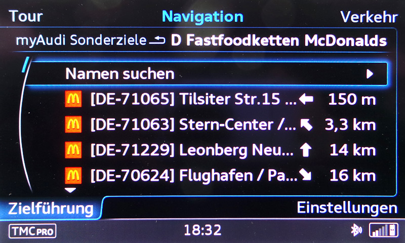 MMI® Navigation (nur mit Softwareupdate auf 0159)