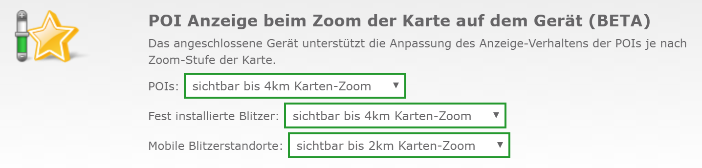 - Blitzer können länderweise unter „Blitzer herunterladen“ (nach Kauf im Shop) ebenfalls zur Auswahl „hinzugefügt“ werden.