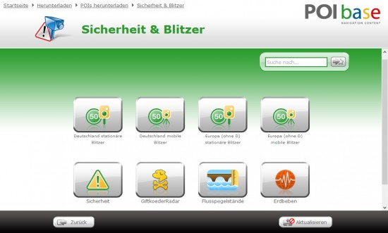 Mit dem Button Hinzufügen die gewünschten POIs aussuchen und dann mit der Schaltfläche Aktualisieren unten rechts auf das Gerät übertragen.