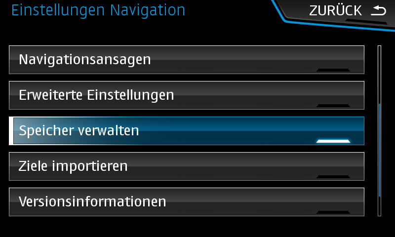 - Gehen Sie zu „Navi“ „Setup“ „Speicher verwalten“ „Meine POI aktualisieren“ .