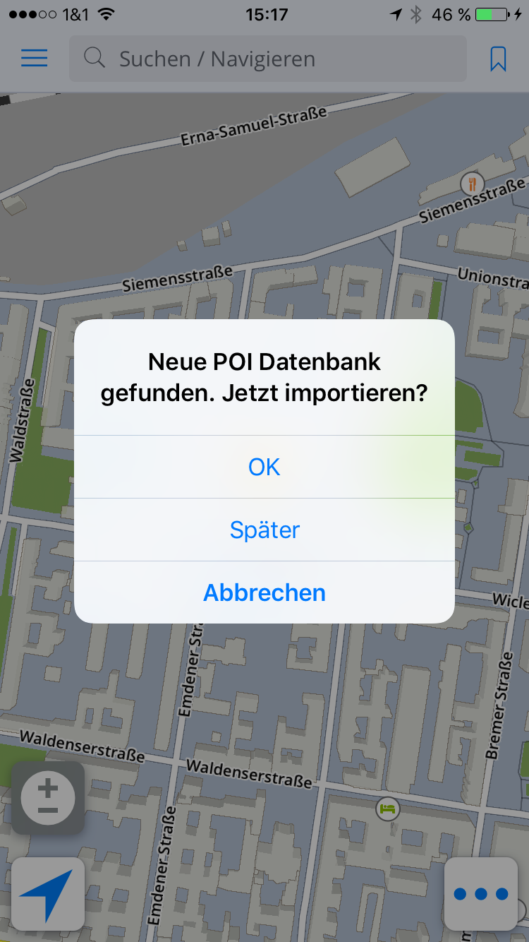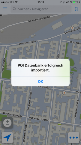 - Nach dem nächsten Start der Sygic App erfolgt eine Meldung, dass die POI-Daten nun übertragen werden.