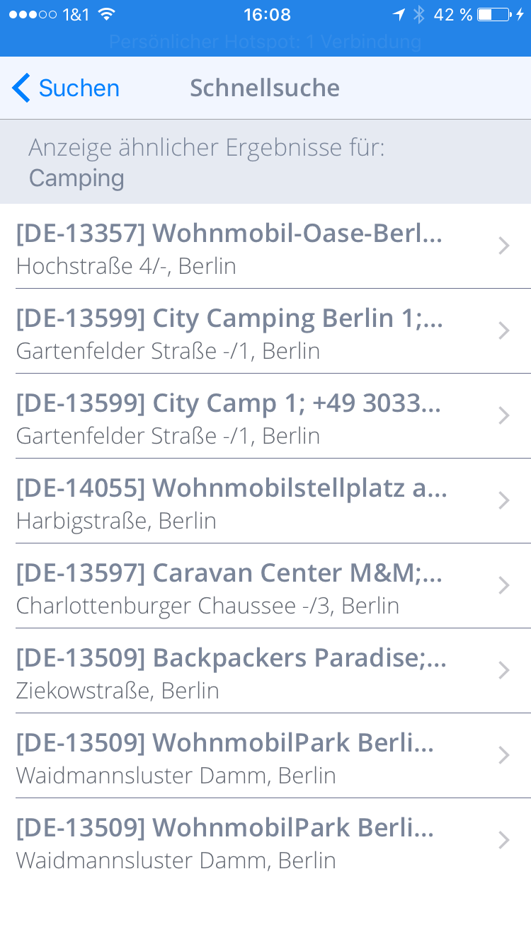 - Nach der Wahl einer Unterkategorie werden im nächsten Schritt die verfügbaren POIs angezeigt. Klicken Sie dahinter auf Hinzufügen um Ihre Auswahl zur Aktualisierungsliste hinzuzufügen. Diesen Vorgang können Sie nun für beliebig viele POI-Kategorien wiederholen.