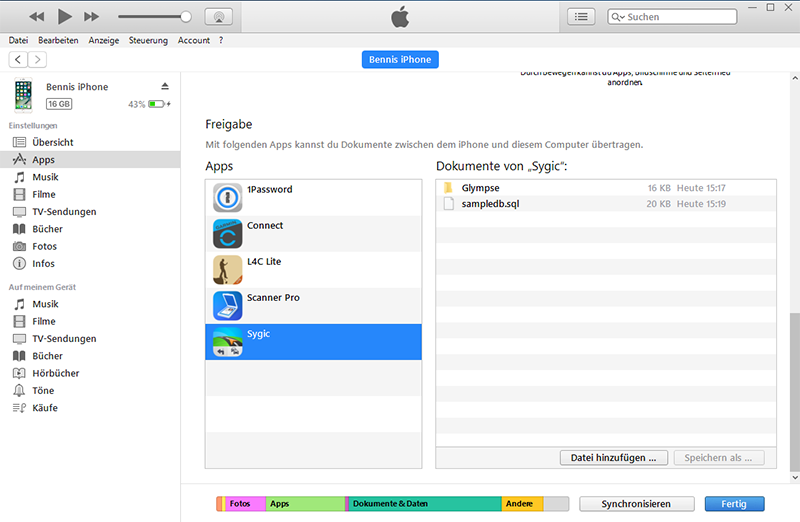- Beenden Sie Sygic auf Ihrem iOS-Gerät und führen Sie eine Synchronisation über iTunes aus.