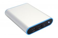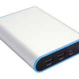 Mittelgroße Powerbank mit schickem Metallgehäuse, 2 x USB-Ausgang und LED-Notbeleuchtung…