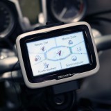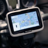 Auf dem Motorrad das Gleiche Spiel: da ich das mitgelieferte Ladekabel nicht verlegen wolle (schließlich ist dies ja nur ein Leihgerät), habe ich das Navi mittels Ram-Mount-Kugel an meine Motorrad montiert und wollte den Test nur mit Akku durchziehen. Hier bemerkt man übrigens das fehlende Mini-USB-Ladebuchse schmerzlich, denn so könnte man das Navi auch mittels Powerakku im Tankrucksack laden. Das kann man sich mit dem Mamba dann abschminken und ist gezwungen das mitgelieferte Motorradladekabel zu verlegen und an die Batterie anzuschließen – sonst wird das nix mit einer längeren Tour…
