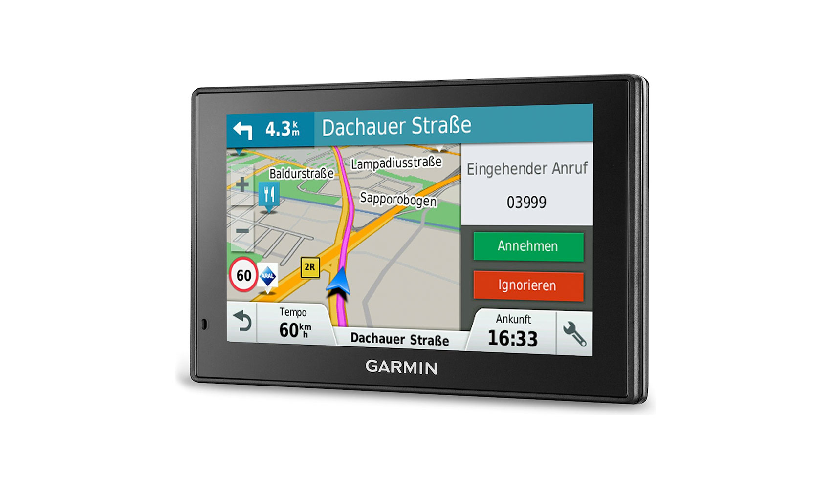 Das Garmin DriveSmart 50LMT-D EU mit 5-Zoll-Display und Garmin Sicherheitspaket empfängt Verkehrsmeldungen über einen integrierten DAB-Empfänger..
