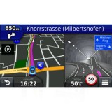 Die Stimmansage ‚Lisa‘ kann wie üblich Straßennamen und -nummern, kling aber im Vergleich zum Vorgängermodell etwas dumpf. Eine andere Stimme kennt zwar nur Richtungs- und Entfernnungsansagen, kommt im Sound jedoch präsenter daher. Auf der Autobahn und großen Bundesstraßen funktioniert der Fahrspurassistent einwandfrei. Ungünstig nur, dass die interessanten Cockpitanzeigen teilweise die visuelle Info überlappen. Ei etwas lästiger Geschwindigkeitsalarm ist schnell abgeschaltet, ebenso wie andere zentrale Einstellungen ist dieses Feature schnell um- und einzuschalten. Alle Suchfunktioen sowie die Zieleingabe sind schnell gemacht: Garmin-like bleiben nur die relevanten Buchstaben übrig, Auswahlen sind sinnvoll.