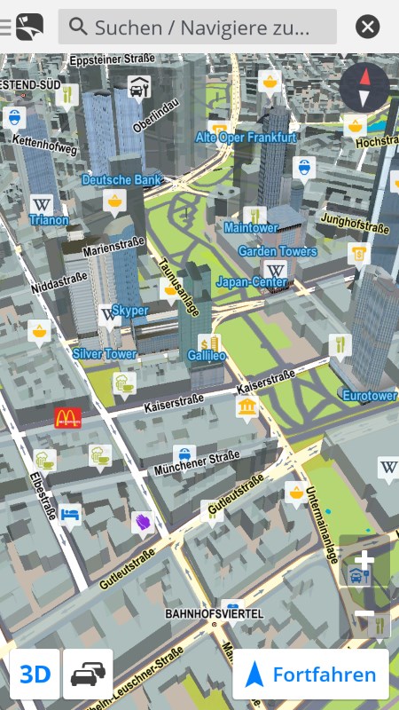 Sygic bietet weltweite Karten, punktet mit einer guten Kartendarstellung und 3D-Gebäuden. Nach einer kostenfreien Testphase zahlt man je nach Kartenpaket von 14,99 EUR (Europa) über 19,99 EUR (Europa+Traffic) bis hin zu 29,99 EUR (ganze Welt+Traffic).