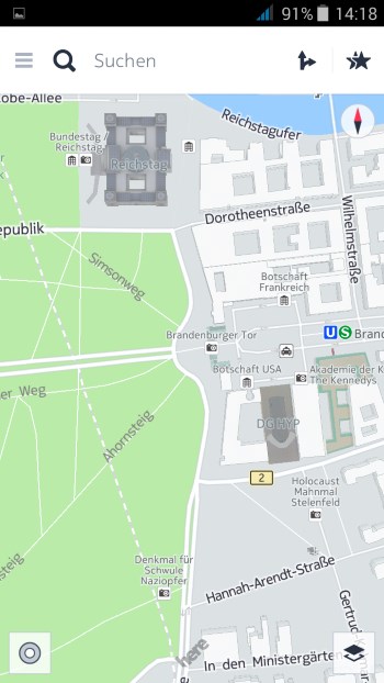 Here ist für Android kostenlos und verfügt über weltweites Kartenmaterial, das leider sehr viel Platz auf dem internen Speicher in Anspruch nimmt, sofern man die App ohne Datenvolumen nutzen möchte. Deutschland schlägt alleine mit 1 GB zu Buche, für Europa benötigt man 10 GB Platz. Die Karten bekommt man nach einer kurzen Registrierung. Here punktet mit einem Live-Verkehrsdienst, der über eine Datenverbindung hergestellt wird.